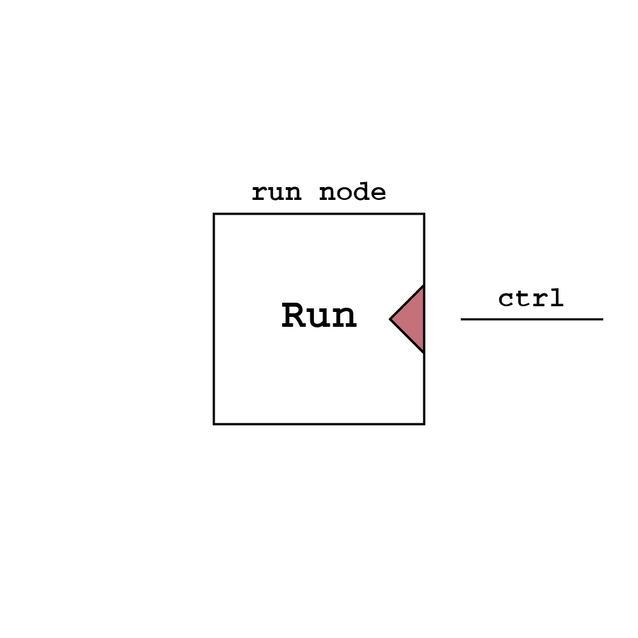 Run - узел, являющийся начальным для любой программы, он позволяет запустить работу всей программы. До запуска обработки данный узел уже является активным.