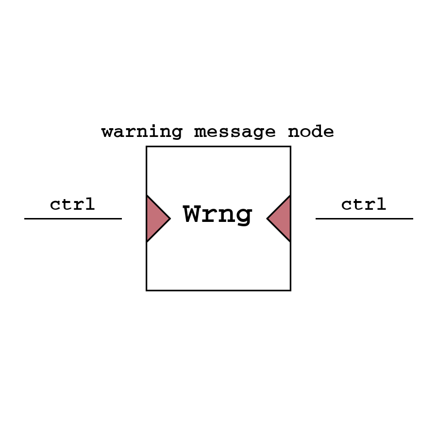 Warning Message - узел, возвращающий ошибку в консоль программы при получении сигнала. Можно настроить название ошибки изменив описание узла.