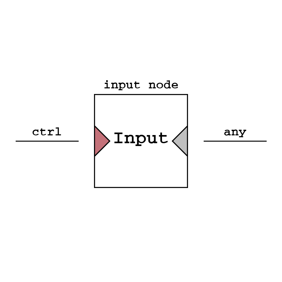 Input - узел для ввода данных в программу. После получение сигнала узел заблокирует выполнение программы, пока не получит значение.