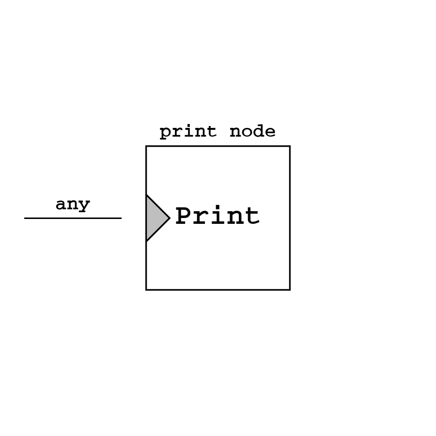 Print - узел вывода данных в программу. После получение сигнала узел забирает данные из входа, если их там нет,