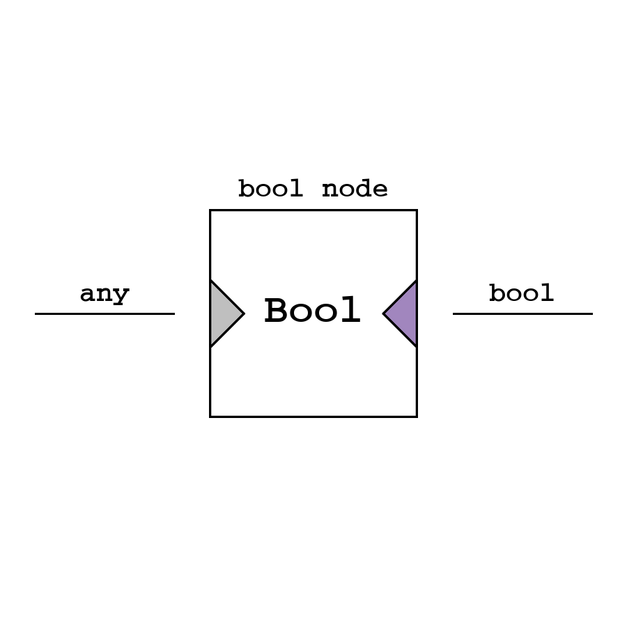 Bool - булочка узел-конвертор, конвертирующий любое входное значение в логический эквивалент по правилу отсутствия: