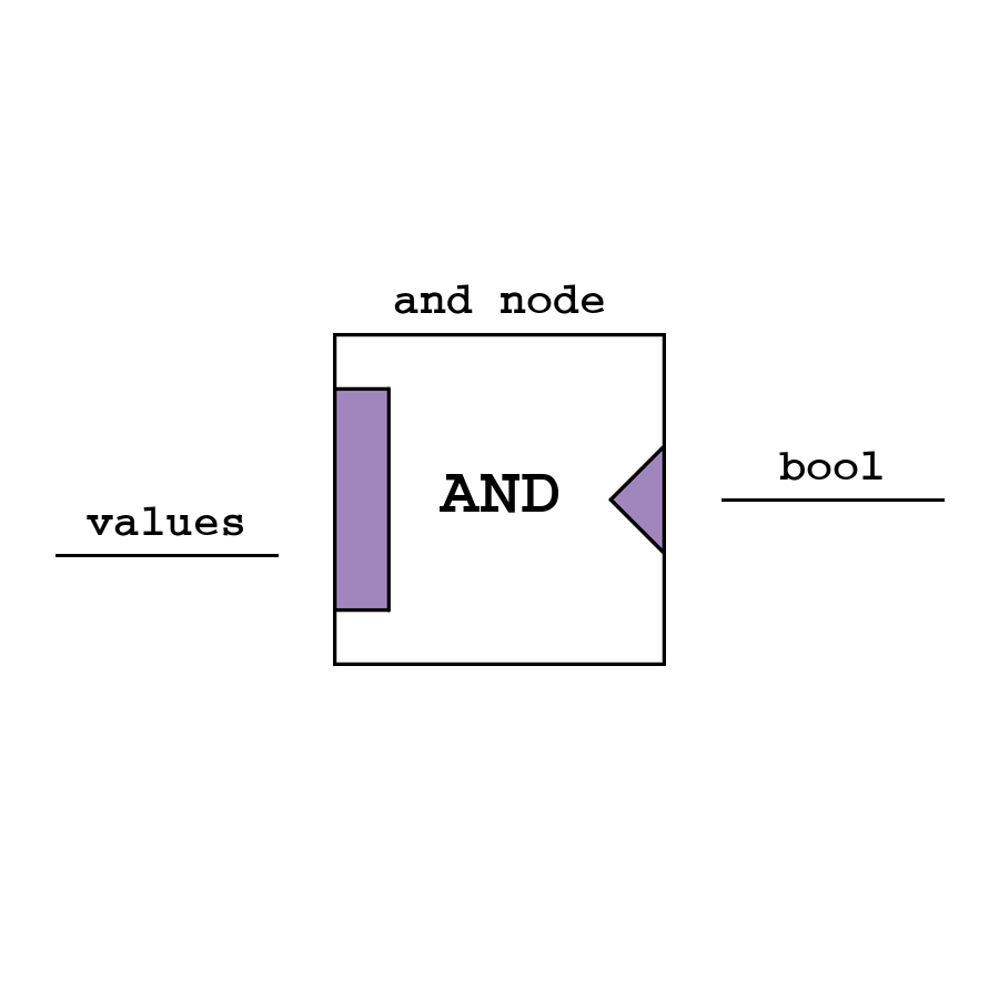 And - логический узел И, который возвращает логическое умножение между всеми входами (значения автоматически приводятся в bool).