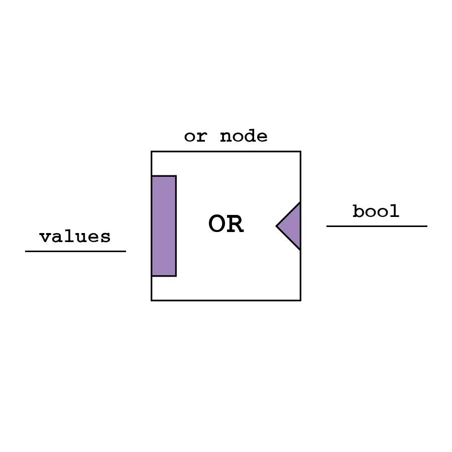 Or - логический узел ИЛИ, который возвращает логическое сложение между всеми входами (значения автоматически приводятся в bool).