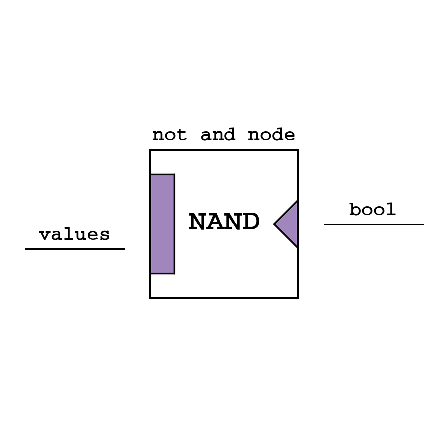 Not And - логический узел И-НЕ, который возвращает инверсию логического умножения между всеми входами (значения автоматически приводятся в bool).