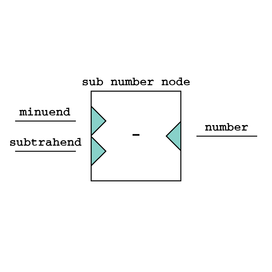 Sub - узел вычитания, уменьшает значение из первого входа на значение второго.