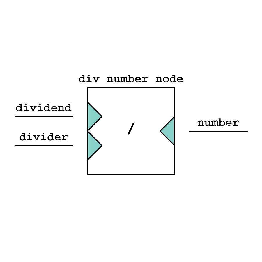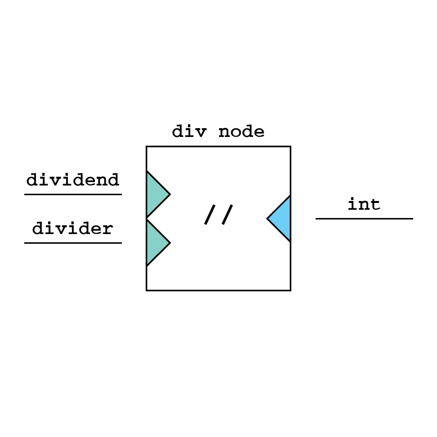 Div - узел целочисленного деления, возвращает целую часть от деления чисел.