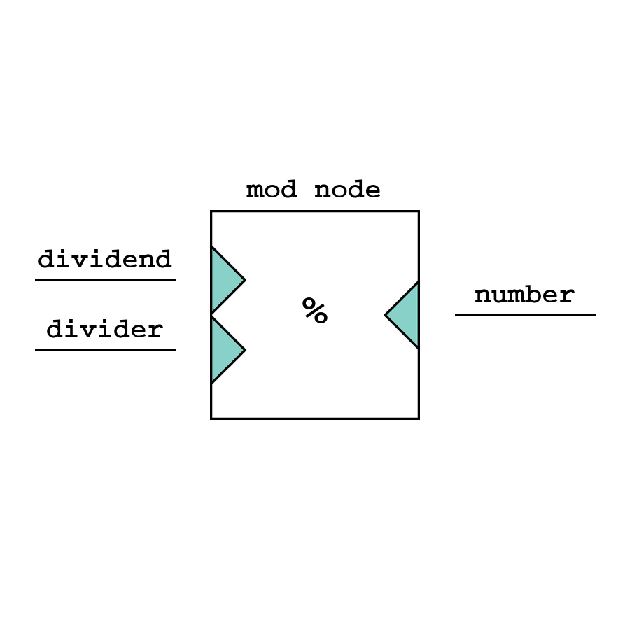 Mod - узел остатка от деления, возвращает остаток от деления чисел.