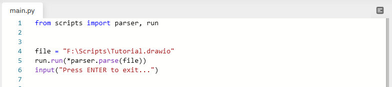 - Если файл не находится в корневой папке и не назван script.drawio, то нужно перейти в файл main.py и заменить путь к файлу